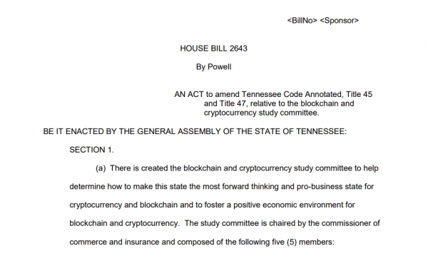 제이슨 파월(Jason Powell) 테네시주 하원 의원의 경우 지난 2월 10일(현지시간) 주 정부 등의 공공기관의 가상화폐 및 대체불가토큰(Non-Fungible Token, NFT) 투자를 허용하자는 취지의 법안 2643(House Bill 2644)을 발의했다.