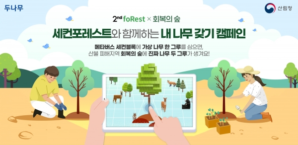 두나무는 3월 21일 산림청과 ‘세컨포레스트와 함께하는 내 나무 갖기’ 캠페인을 개최한다고 밝혔다.