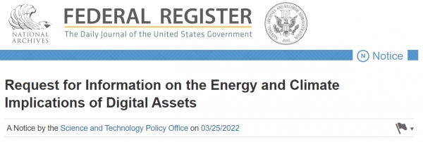 미국 과학기술정책실이 대중 의견 취합과 관련해 공개한 자료에 따르면 여론 수렴은 디지털 자산의 프로토콜, 하드웨어, 자원, 경제 및 기타 요인이 기후 변화에 어떻게 영향을 미치는지 초점을 맞출 것으로 드러났다.