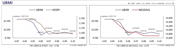 업비트가 해당 거래소 내 모든 원화 기반의 디지털 자산을 반영해 취합한 지표인 업비트 시장지수(Upbit Market Index, UBMI)는 조사 기간 동안 8.03% 하락했다. 같은 시점 코스피와 나스닥은 각각 –2.09%와 –5.65%의 변화 폭을 보였다. 업비트의 디지털 자산 가격과 거래량 지표를 수집해 지수를 산출한 두나무 데이터밸류팀은 가상화폐 시장이 코스피에 뒤따라 나스닥과 함께 하락하는 추세였다고 설명했다.
