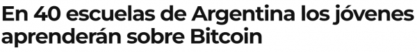 아르헨티나 내 40여 개의 고등학교가 오는 8월부터 4천여 명의 학생을 대상으로 비트코인과 블록체인에 대한 교육을 시행할 예정이라고 가상화폐 전문매체인 크립토노티시아스(CriptoNoticias)가 지난 4월 25일(현지시간) 보도했다.
